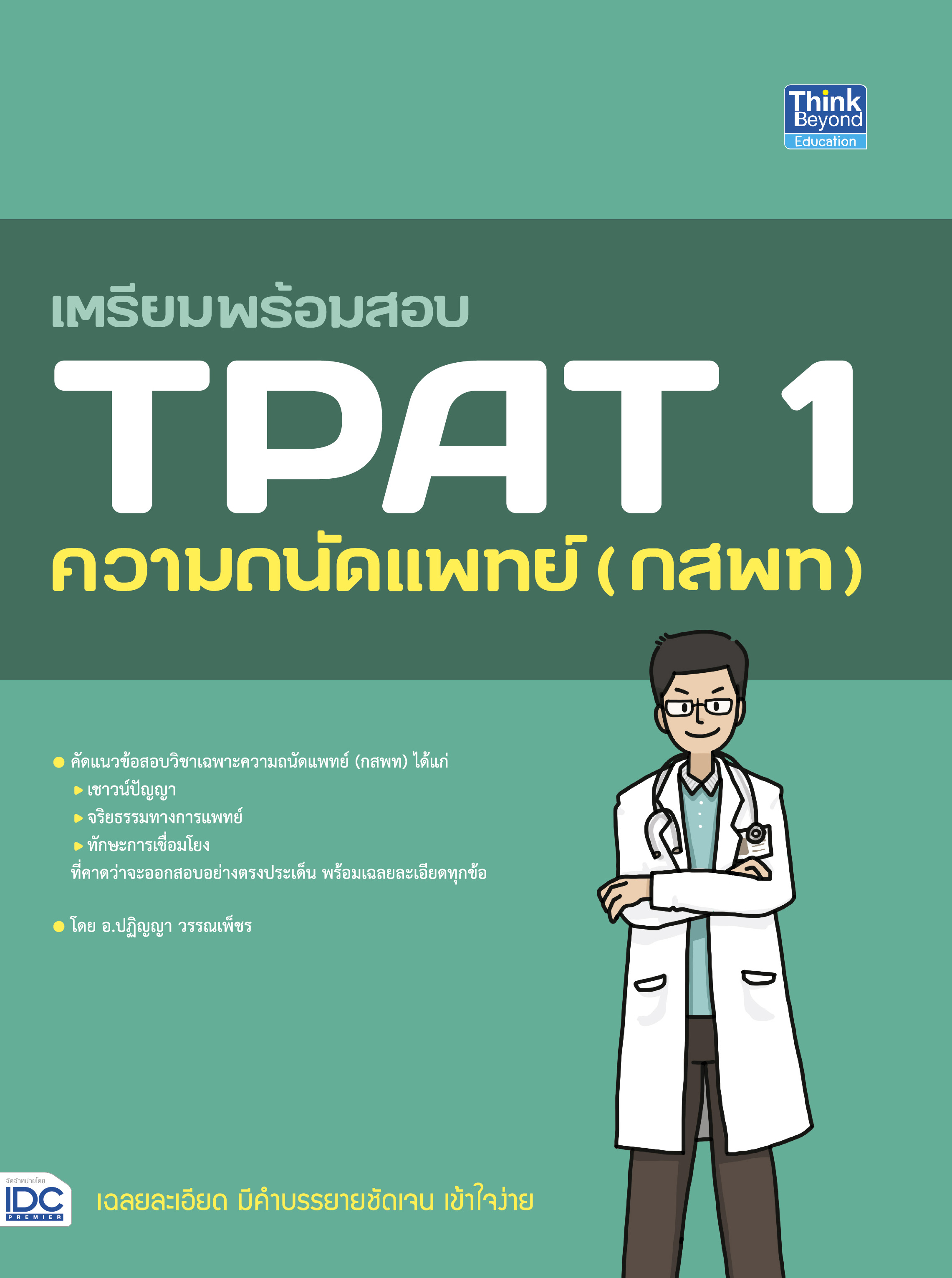"แนวข้อสอบ TPAT1 วิชาเฉพาะ กสพท (แนวใหม่) พิชิตข้อสอบมั่นใจ 100%" เล่มนี้ เป็นแนวข้อสอบ (แนวใหม่) การสอบวิชาเฉพาะแพทย์ หรือวิชา TPAT1 หลักสูตรล่าสุด เพื่อเข้าศึกษาต่อในคณะแพทยศาสตร์ ทันตแพทยศาสตร์ สัตวแพทยศาสตร์ เภสัชศาสตร์ และสายการแพทย์ที่เกี่ยวข้อง โดยในเล่มมีเนื้อหาครบทั้ง 3 ด้าน ประกอบด้วย- Part 1 จริยธรรมทางการแพทย์ ความสามารถในการแสดงทัศนคติต่อสถานการณ์ และเหตุการณ์ต่าง ๆ- Part 2 เชาว์ปัญญา ความสามารถในการคำนวณ การจับใจความเน้นไปในทางคณิตศาสตร์ ตรรกศาสตร์ อนุกรม การจับคู่ มิติสัมพันธ์ ทักษะการบูรณาการทั้งคณิตศาสตร์ ม.ต้น และ ม.ปลาย การวิเคราะห์คำศัพท์ และบทความ- Part 3 ความคิดเชื่อมโยง ทักษะในการคิด พิจารณา วิเคราะห์ การจับใจความสำคัญที่มีความซับซ้อนหลายมิติ